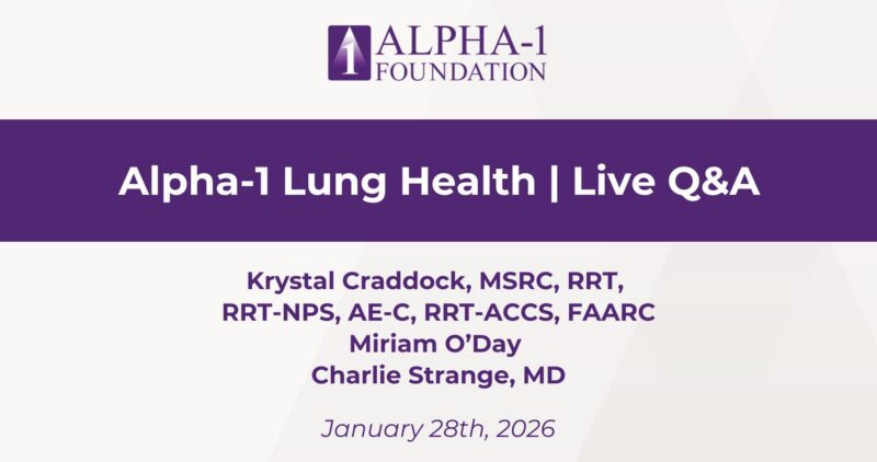 A1F presented “Alpha-1 Lung Health | Live Q&A” at the 2026 Virtual Alpha-1 Education Day. Krystal Craddock, MSRC, RRT, RRT-NPS, […]