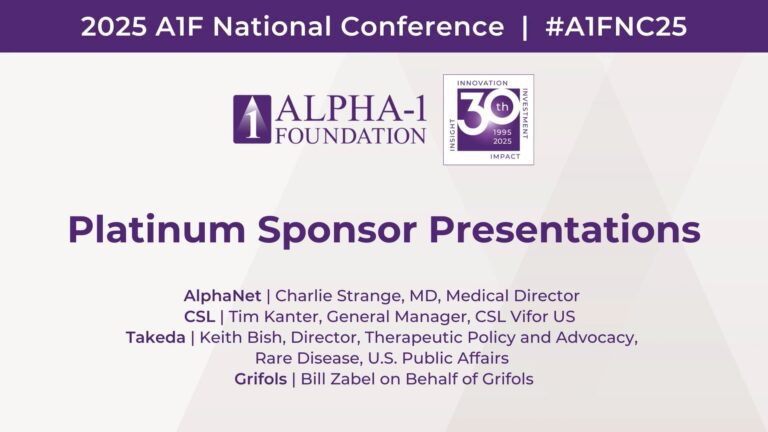 AlphaNet, CSL, Takeda, and Grifols presented “Platinum Sponsors” presentations at the 2025 Alpha-1 Foundation National Conference.